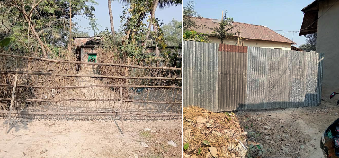 বাড়ির রাস্তায় বাঁশ ও টিনের বেড়া : তাড়াশে ১৫ দিন ধরে অরুদ্ধ দু’টি পরিবার