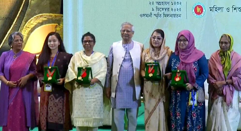 মঙ্গলবার (৯ ডিসেম্বর) রাজধানীর ওসমানী স্মৃতি মিলনায়তনে আয়োজিত অনুষ্ঠানে প্রধান উপদেষ্টা নির্বাচিত চার নারীর হাতে এ পদক তুলে দেন।