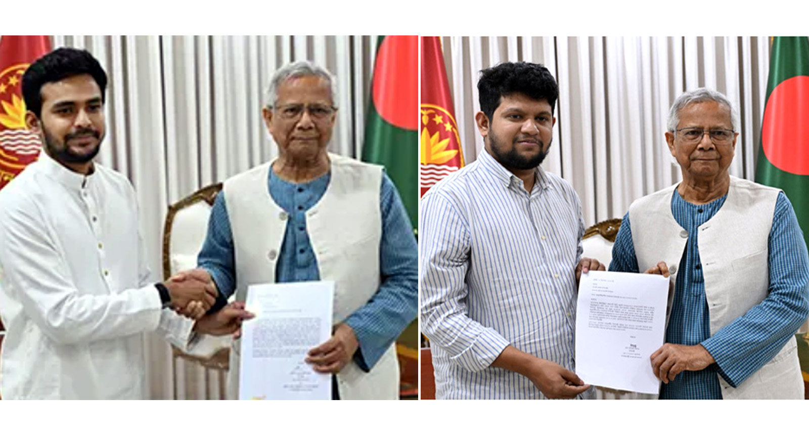 নিজেদের কর্মের মাধ্যমে দেশের মঙ্গলে নিয়োজিত থাকার আহ্বান জানিয়ে দুই ছাত্রনেতার উদ্দেশে প্রধান উপদেষ্টা আরও বলেন, ‘সরকারে থেকে যে অভিজ্ঞতা তোমরা অর্জন করেছ, তা ভবিষ্যৎ জীবনে অবশ্যই কাজে লাগাতে হবে। সূত্র: বাসস