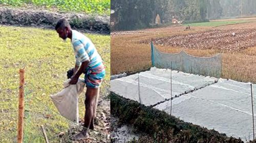 বোরো ধানের বীজতলার চারা বাঁচাতে পলিথিন