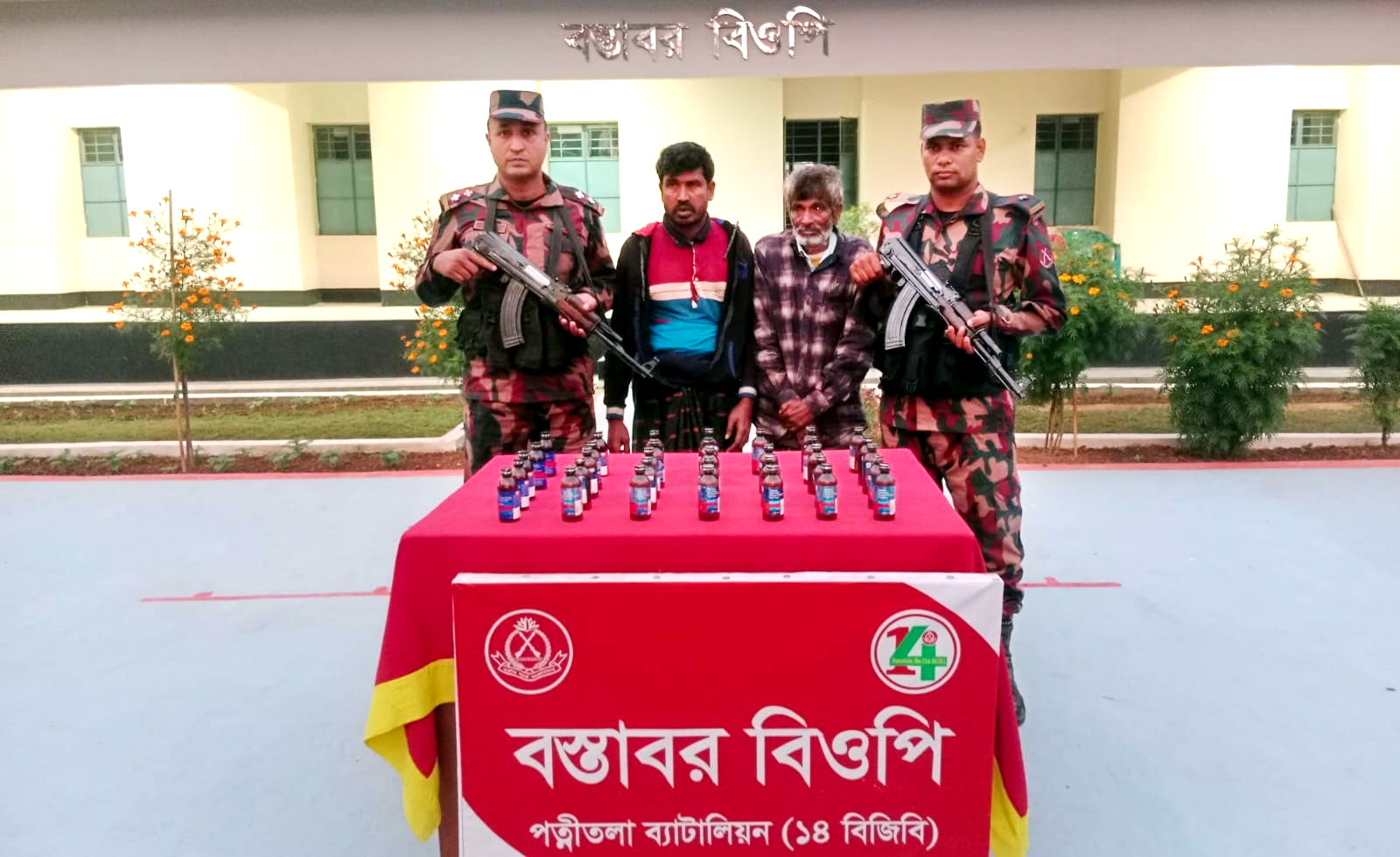 পত্নীতলা ১৪-বিজিবির জানায় ভোর ৫টার দিকে টহল কমান্ডার নায়েক মোঃ এরশাদ আলীর নেতৃত্বে একটি টহল দল সীমান্ত পিলার ২৬৩/২-এস থেকে প্রায় ৫০০ গজ ভেতরে সন্দেহভাজন দুইজনকে ধাওয়া করে। পরে তাদের কাছে থাকা ২৮ বোতল ভারতীয় ফেন্সিডিল এবং ৬ বোতল ফেয়ারডিল সিরাপ জব্দসহ আটক করা হয়।