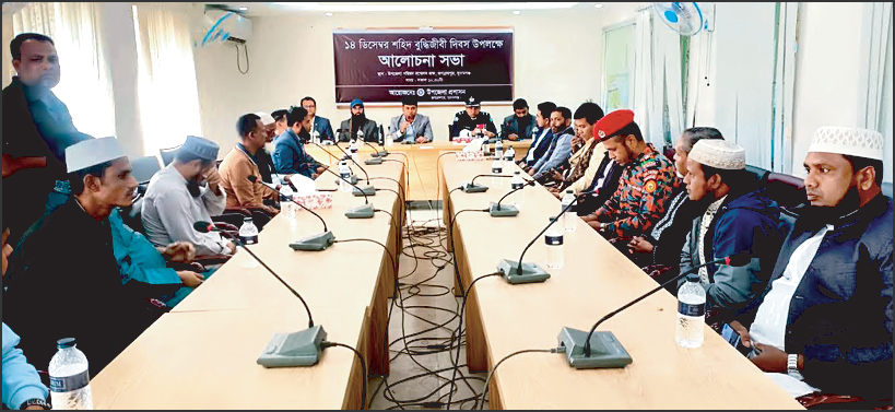 রবিবার (১৪ ডিসেম্বর) সকাল ১০ টায় জগন্নাথপুর উপজেলা শহীদ মিনারে শ্রদ্ধা নিবেদন শেষে উপজেলা পরিষদ সন্মেলন কক্ষে এক আলোচনা সভা অনুষ্ঠিত হয়। উপজেলা নির্বাহী কর্মকর্তা মো. বরকত উল্লাহ’র সভাপতিত্বে অনুষ্ঠিত সভায় বক্তব্য রাখেন, উপজেলা সহকারী কমিশনার(ভূমি) মো. মহসীন উদ্দীন, জগন্নাথপুর থানার ভারপ্রাপ্ত কর্মকর্তা (ওসি) শফিকুল ইসলাম, উপজেলা প্রকৌশলী সোহরাব হোসেন, প্রাথমিক সহকারী শিক্ষা কর্মকর্তা মামুন হাওলাদার, কৃষি অফিসার কাউছার আহমেদ প্রমুখ। এ সময় বিভিন্ন দপ্তরের সরকারি কর্মকর্তা-কর্মচারীবৃন্দ উপস্থিত ছিলেন।