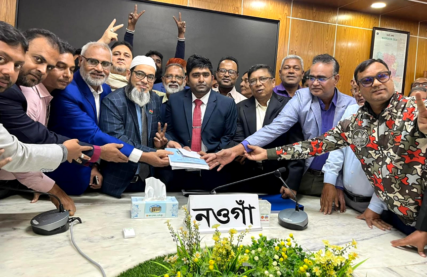 মঙ্গলবার (১৬ ডিসেম্বর) দুপুর সাড়ে বারোটার দিকে নওগাঁ জেলা প্রশাসকের সম্মেলন কক্ষে জেলা রিটার্নিং কর্মকর্তা মাহাম্মদ সাইফুল ইসলামের পক্ষে সহকারী কমিশনার ও এক্সিকিউটিভ ম্যাজিস্ট্রেট প্রশান্ত কুমারের কাছ থেকে আনুষ্ঠানিক ভাবে মনোনয়ন ফরম সংগ্রহ করেন নওগাঁ পৌর বিএনপির সাবেক সাধারণ সম্পাদক নুরুন্নবী সাজা ও জেলা বিএনপির সাংগঠনিক সম্পাদক খায়রুল আলম গোল্ডেন।
