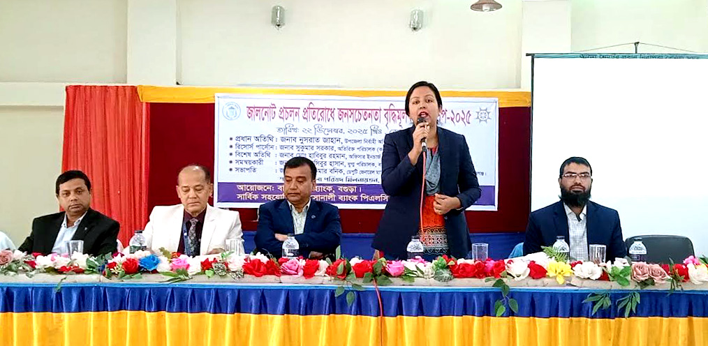 প্রধান অতিথির বক্তব্যে উপজেলা নির্বাহী কর্মকর্তা নুসরাত জাহান জালনোট সম্পর্কে সকলকে সজাক থাকার আহবান জানান। আসল নোট চেনার উপায় গুলো স্মরণ রাখতে অনুরোধ করেন। সেই সাথে তিনি জালনোট বহনকারীর শাস্তি সম্পর্কে সকলকে সচেতন করেন।