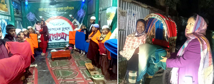 সিরাজগঞ্জের তাড়াশে তীব্র শীত উপেক্ষা করে গভীর রাতে শীতার্ত অসহায় মানুষের দোরগড়ায় গিয়ে হাতে হাতে কম্বল পৌঁছে দিলেন উপজেলা নির্বাহী কর্মকর্তা নুসরাত জাহান। বুধবার গভীর রাতে পৌর শহরের দক্ষিণ পাড়া মহল্লার নূরানী মাদ্রাসা,মঙ্গলবাড়িয়া হাফেজিয়া মাদ্রাস,সোলাপাড়া হাফিজিয়া মাদ্রাসার ছাত্র-শিক্ষক ও ছিন্নমূল সীতার্ত মানুষের দোরগোড়ায় গিয়ে নিজ হাতে কম্বল তুলে দেন তিনি।