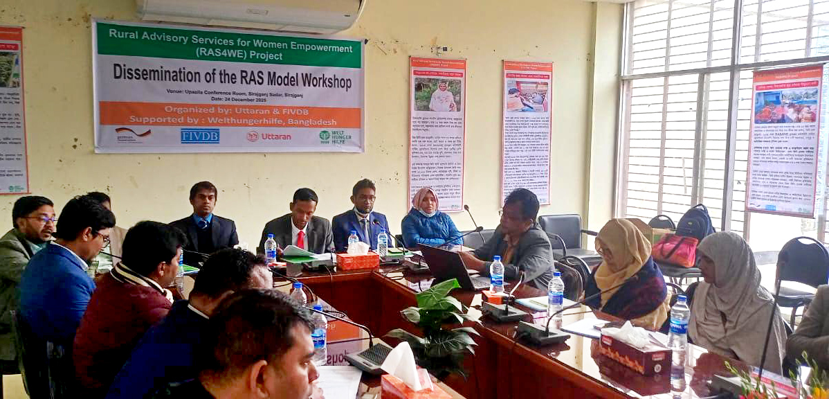 সিরাজগঞ্জ সদর উপজেলায়-” রুরাল এডভাইজরি সার্ভিসেস ফর উইমেন এম্পাওয়ারমেন্ট” (রাসউই প্রকল্প)-এর আওতায় “ডিসিমিনেশন অফ রাস মডেল” শীর্ষক একটি ওয়ার্কশপ অনুষ্ঠিত হয়েছে।
