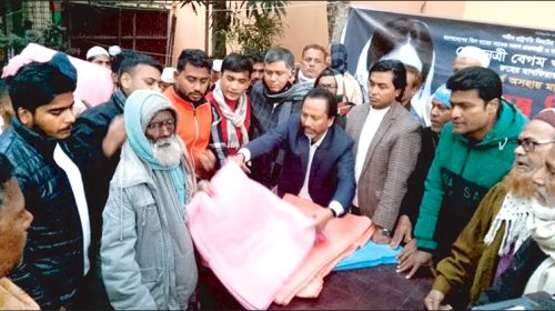 সিরাজগঞ্জ সাহেদনগরে খালেদা জিয়ার রুহের মাগফেরাত কামনা করে গরীব, অসহায় শীতার্ত মানুষদের মাঝে কম্বল বিতরণ