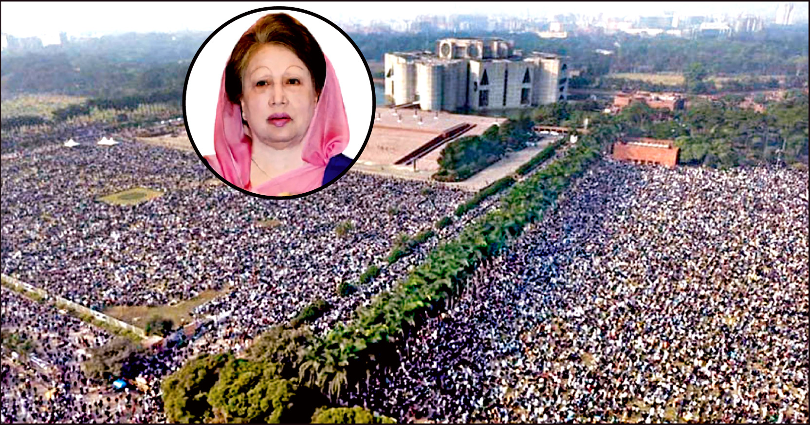 জানাজায় বিপুল মানুষ, ঢাকার রাস্তা লোকারণ্য : প্রায় কোটি মানুষের সমাগমে অবিসংবাদিত নেত্রী খালেদা জিয়ার নামাজে জানাজা সম্পন্ন হয়। রাজধানীর মানিক মিয়া অ্যাভিনিউতে বেলা ৩টায় তাঁর জানাজার নামাজ শুরু হয়। শেষ হয় ঠিক ৩টা ৫ মিনিটে। তিনবারের সাবেক প্রধানমন্ত্রী খালেদা জিয়ার নামাজে জানাজায় অংশ নিতে মানিক মিয়া অ্যাভিনিউ ও আশপাশ এলাকায় সকাল থেকেই জড়ো হতে থাকে বিপুল মানুষ। মহানগরী ও আশপাশের জেলা ছাড়াও বিভিন্ন এলাকা থেকে দলে দলে মানুষ যোগদান করে জানাজায়। সরেজমিন দেখা যায়, সংসদ ভবন এলাকা ছাড়িয়ে যায় জানাজা। সংসদ ভবন এলাকা থেকে কারওয়ান বাজার পর্যন্ত সড়কে বিপুল মানুষ জানাজায় অংশ নেয়। এ ছাড়া আসাদগেট থেকে মোহাম্মদপুর টাউন হলের কাছাকাছি, আগারগাঁও মেট্রো স্টেশন থেকে শিশুমেলার (শ্যামলী) কাছাকাছি পর্যন্ত সড়কে বিপুল মানুষ জানাজায় অংশ নেয়। এর আগে বিএনপি চেয়ারপারসন খালেদা জিয়ার জানাজাস্থলে উপস্থিত হয়ে সবার কাছে মায়ের জন্য দোয়া চান তাঁর ছেলে তারেক রহমান। জানাজায় উপস্থিত বিপুল মানুষের উদ্দেশে তারেক রহমান বলেন, ‘দোয়া করবেন আল্লাহতায়ালা যাতে উনাকে বেহেশত দান করেন।’ দলের সিনিয়র যুগ্ম মহাসচিব রুহুল কবির রিজভীর পরিচালনায় খালেদা জিয়ার বর্ণাঢ্য রাজনৈতিক জীবনের সংক্ষিপ্ত ইতিহাস তুলে ধরেন বিএনপির জাতীয় স্থায়ী কমিটির সদস্য নজরুল ইসলাম খান। প্রধান উপদেষ্টা অধ্যাপক ড. মুহাম্মদ ইউনূস, উপদেষ্টা পরিষদের প্রায় সব সদস্যসহ সেনাবাহিনী প্রধান জেনারেল ওয়াকার-উজ-জামান, নৌবাহিনীর প্রধান রিয়ার অ্যাডমিরাল মোহাম্মদ নাজমুল হাসান ও বিমানবাহিনীর প্রধান এয়ার চিফ মার্শাল হাসান মাহমুদ খাঁন জানাজায় অংশ নেন ।