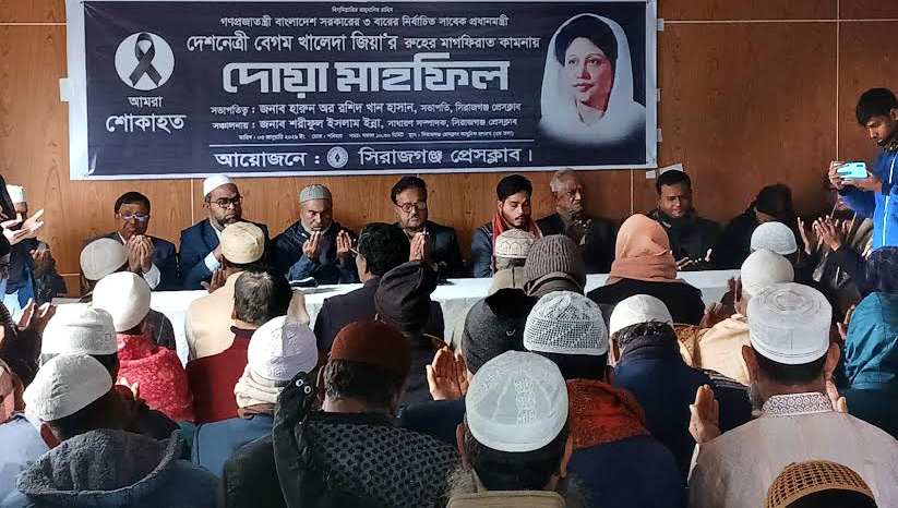 দেশের প্রথম নারী প্রধানমন্ত্রী ও বিএনপি চেয়ারপারসন বেগম খালেদা জিয়ার রূহের মাগফেরাত কামনায় সিরাজগঞ্জ প্রেসক্লাবের উদ্যোগে দোয়া ও মিলাদ মাহফিল অনুষ্ঠিত হয়েছে।