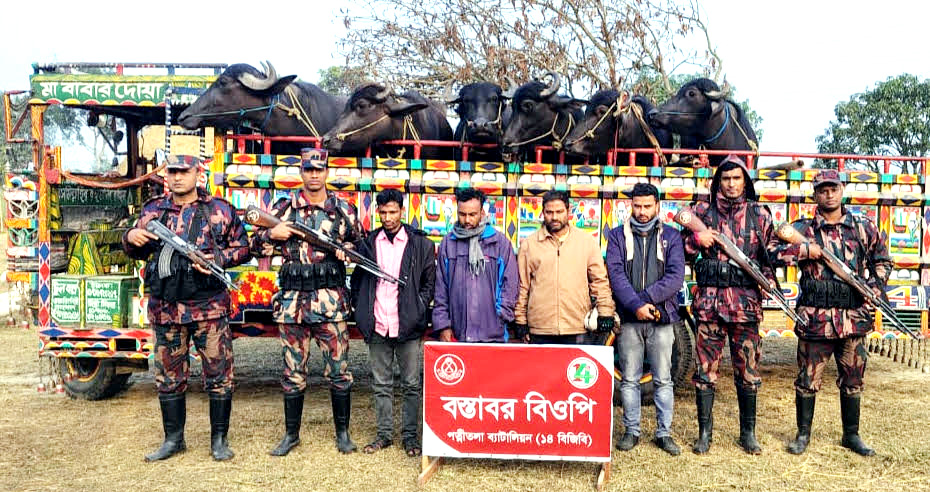 এসময় ৬টি ভারতীয় মহিষ, ১টি ইঞ্জিন চালিত ভটভটি গাড়ি ও ৪টি মোবাইল ফোনসহ ৪ জন চোরাকারবারীকে আটক করা হয়। আটককৃতরা হলেন মোঃ রাশেদুল ইসলাম (২৬), মোঃ জহুরুল ইসলাম (৪০), মোঃ হুমায়ুন কবির (৩৮) ও মোঃ তরিকুল ইসলাম (৩৫)। তারা সবাই ধামইরহাট থানার বাসিন্দা আটককৃত চোরাকারবারীদের বিরুদ্ধে প্রয়োজনীয় আইনগত ব্যবস্থা গ্রহণ প্রক্রিয়াধীন রয়েছে। গবাদিপশুসহ জব্দকৃত মালামাল মামলা দায়ের পূর্বক ধামইরহাট থানা পুলিশের নিকট হস্তান্তরের কার্যক্রম চলমান রয়েছে। জব্দকৃত মালামালের আনুমানিক বাজারমূল্য ২২ লাখ ২৩ হাজার ৪০০ টাকা বলে জানিয়েছে বিজিবি।