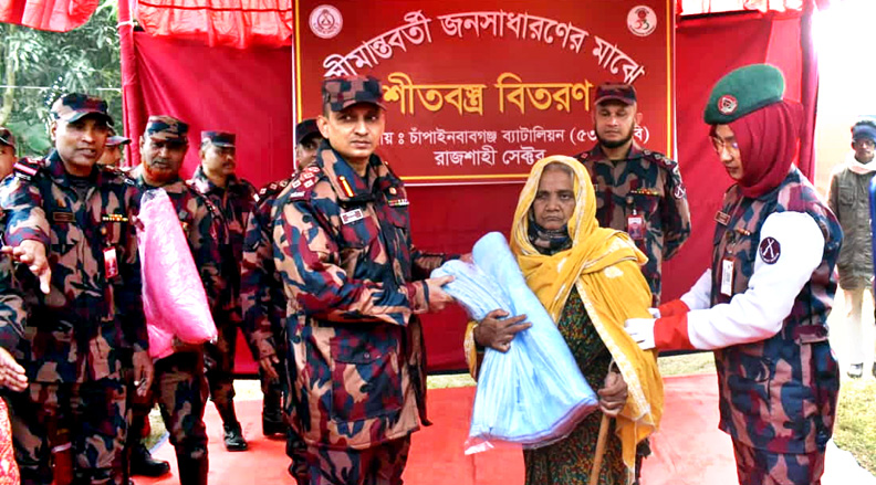 চলমান তীব্র শীতে বিপর্যস্থ স্থানীয় শীতার্ত মানুষের মাঝে রাজশাহী সেক্টর এবং চাঁপাইনবাবগঞ্জ ব্যাটালিয়ন (৫৩ বিজিবি) কর্তৃক শীতবস্ত্র বিতরণ কর্মসূচি পালিত হয়।
