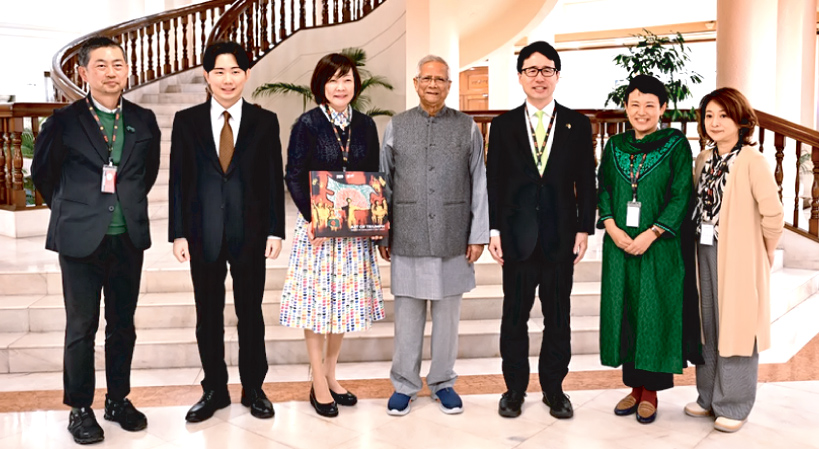 রাষ্ট্রীয় অতিথি ভবন যমুনায় জাপানের সাবেক ফার্স্ট লেডি আকিয়ে আবে ও জাপানি উদ্যোক্তাদের একটি প্রতিনিধি দল সোমবার প্রধান উপদেষ্টার সঙ্গে সৌজন্য সাক্ষাৎ করতে এলে তিনি এই আহ্বান জানান। সাক্ষাতে আকিয়ে আবে বাংলাদেশে শান্তি ও স্থিতিশীলতা ফিরিয়ে আনা এবং অর্থনৈতিক পুনরুদ্ধারে নেতৃত্ব দেওয়ার জন্য অধ্যাপক ইউনূসের প্রশংসা করেন। তিনি বলেন, বর্তমান পরিস্থিতিতে অধ্যাপক ইউনূসের নেতৃত্ব গুরুত্বপূর্ণ ভূমিকা রাখছে। বৈঠকে বিনিয়োগ, সামুদ্রিক গবেষণা এবং জাপানে পরিচর্যাকারী ও নার্স নিয়োগসহ বিভিন্ন ক্ষেত্রে সহযোগিতার সম্ভাবনা নিয়ে আলোচনা হয়। দ্রুত বয়স্ক জনসংখ্যা বৃদ্ধির কারণে জাপানে এসব পেশায় জনবলের চাহিদা বাড়ছে বলে বৈঠকে উল্লেখ করা হয়। সামুদ্রিক দূষণ রোধে সহযোগিতার বিষয়ে বিশেষ আগ্রহ প্রকাশ করে আকিয়ে আবে বলেন, বঙ্গোপসাগরে যেন আবর্জনা না ফেলা হয়, তা নিশ্চিত করতে হবে।