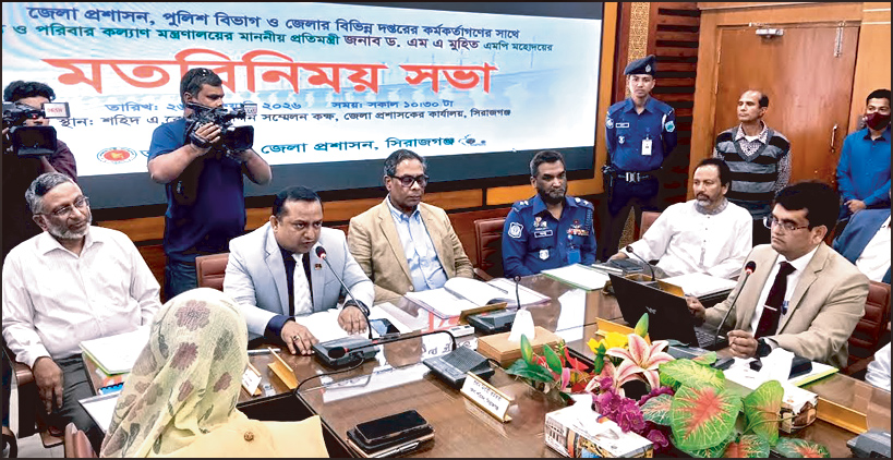 সিরাজগঞ্জের কৃতি সন্তান, গণপ্রজাতন্ত্রী বাংলাদেশ সরকারের স্বাস্থ্য ও পরিবার পরিকল্পনা, ডাক,তার ও টেলিযোগাযোগ ও বিজ্ঞান প্রযুক্তি মন্ত্রণালয়ের প্রতিমন্ত্রী ড.এম.এ মুহিত এমপি এর সাথে সিরাজগঞ্জ জেলা প্রশাসন, পুলিশ বিভাগ ও জেলার বিভিন্ন দপ্তরের কর্মকর্তাদের সাথে মতবিনিময় সভা অনুষ্ঠিত হয়। জেলা প্রশাসন সিরাজগঞ্জের আয়োজনে, বৃহস্পতিবার (২৬ ফেব্রুয়ারী) সকাল সাড় ১০ টার দিকে সিরাজগঞ্জ জেলা প্রশাসকের কার্যালয়ের শহীদ শামসুদ্দিন সম্মেলন কক্ষে সিরাজগঞ্জ জেলার বিভিন্ন দপ্তরের কর্মকর্তাদের সাথে মতবিনিময়সভার সভাপতিত্ব করেন, জেলা প্রশাসক মোঃ আমিনুল ইসলাম।